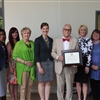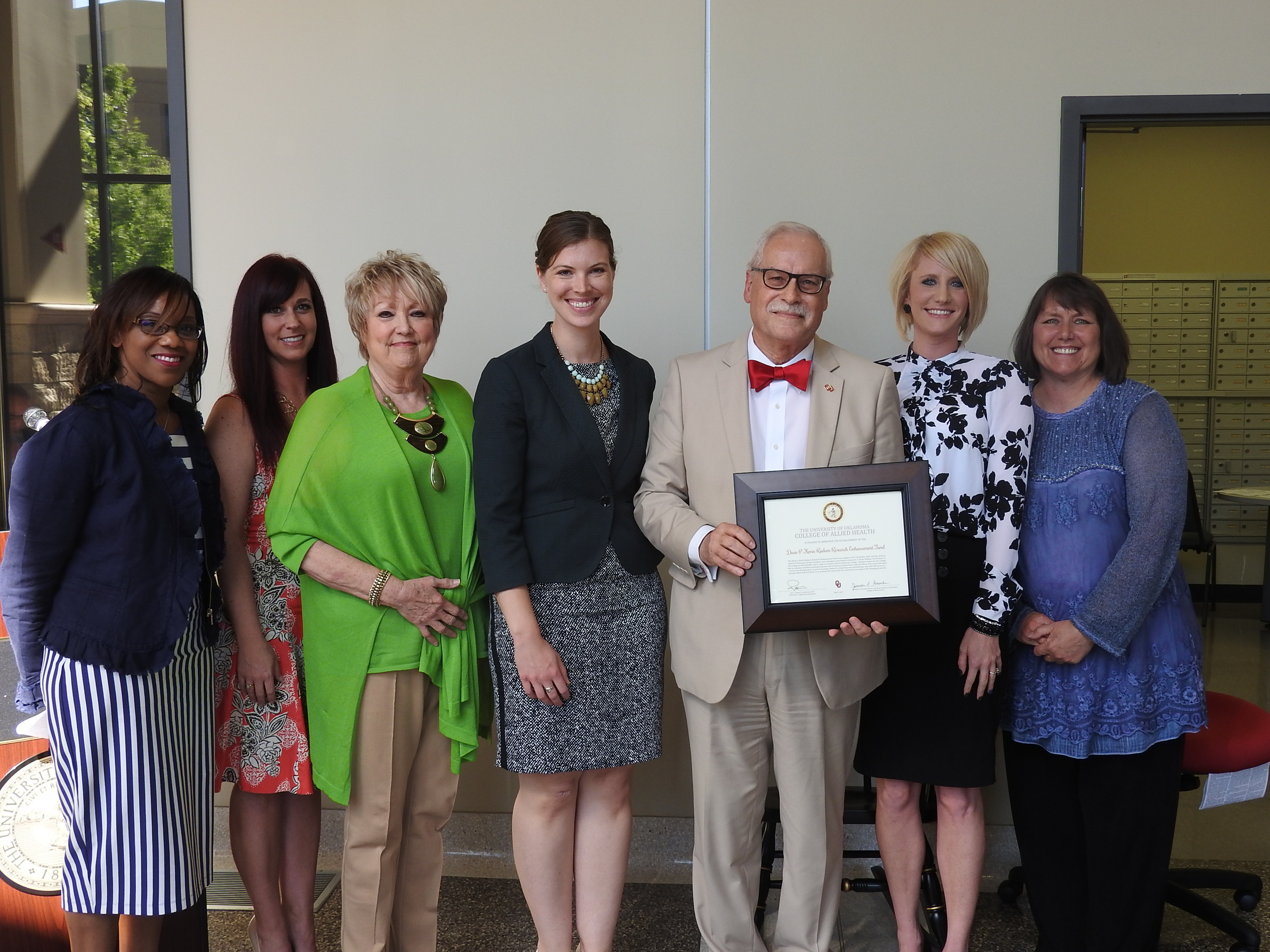 Pictured (left to right): Linda Alfred, Board of Advocates Chairperson; Leslee Smith, Staff Advisory Chairperson; Jenielle Greenlee, Staff Retiree; Dr. Leah Hoffman, Research Committee Representative; Dean P. Kevin Rudeen; Kyndall Wahkinney, Director of Alumni Affairs and Development; Dr. Shirley James, Faculty Board Chairperson