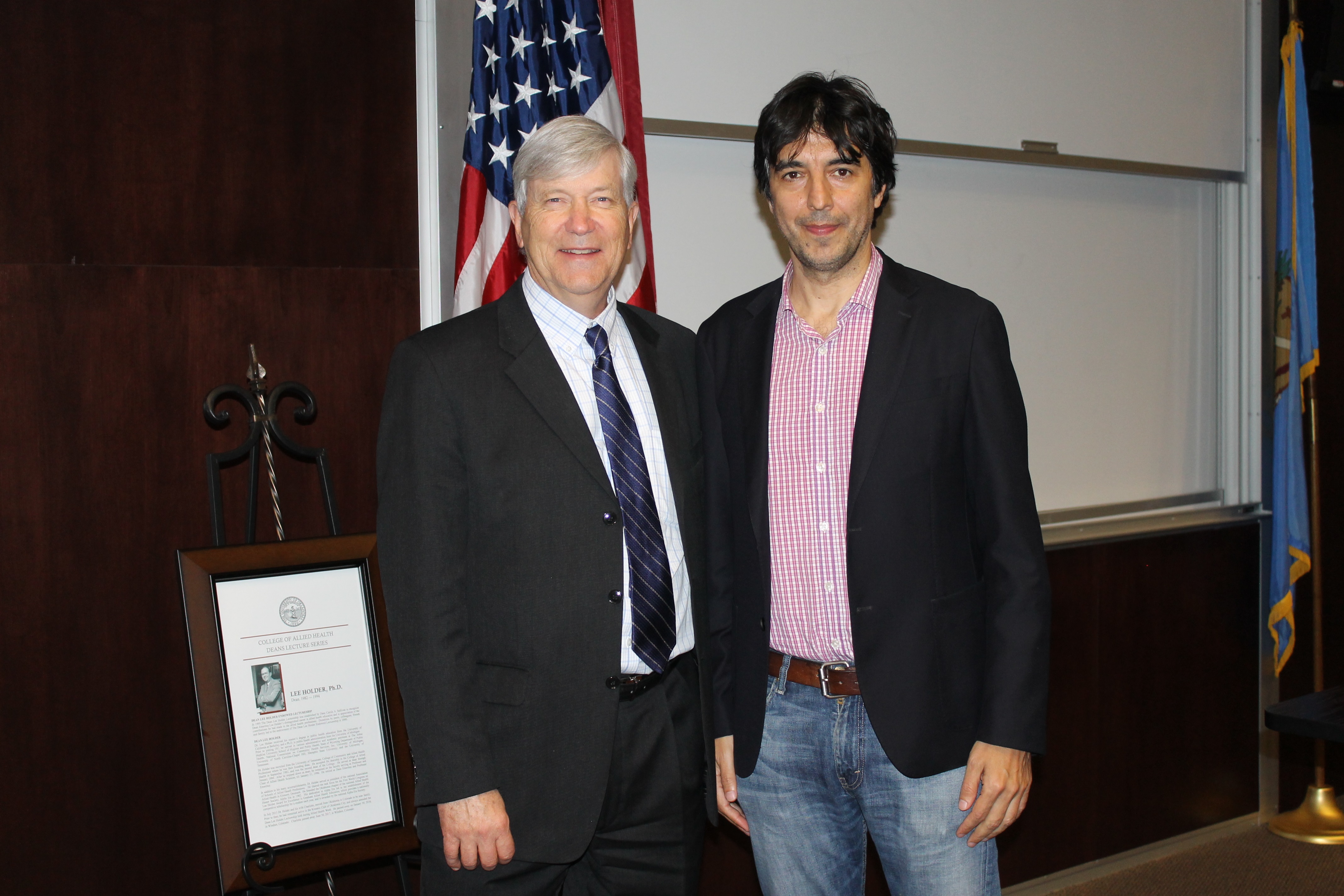 Dr. Valter Longo, PhD, Jones Professor of Gerontology at the University of Southern California, acclaimed researcher on nutrition and longevity and creator of the fasting mimicking diet, presented the keynote address at the College’s 50th Anniversary kick-off celebration on November 11 in the College of Allied Health Building. His presentation, “Nutrition, Genes, and Lifespan”, was viewed by the largest assembly in the history of the College, estimated at over 500 faculty, staff, students, and guests across the OKC and Tulsa campuses. Both Provost Sanders and President Schumann (OU-Tulsa) were in attendance and welcomed the audience.